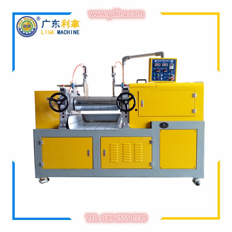 主要工作部件是兩異向向內(nèi)旋轉(zhuǎn)的中空輥筒或鉆孔輥筒,裝置在操作者一面的稱(chēng)作前輥,可通過(guò)手動(dòng)或電動(dòng)作水平前后移動(dòng),借以調(diào)節(jié)輥距,適應(yīng)操作需求;后輥則是固定的,不能作前后移動(dòng)。兩輥筒大小一般相同,各以不同速度相對(duì)回轉(zhuǎn),生膠或膠料隨著輥筒的轉(zhuǎn)動(dòng)被卷入兩輥間隙,受強(qiáng)烈剪切作用而達(dá)到塑煉或混煉的目的。開(kāi)煉機(jī)也用于塑料加工等部門(mén)中。